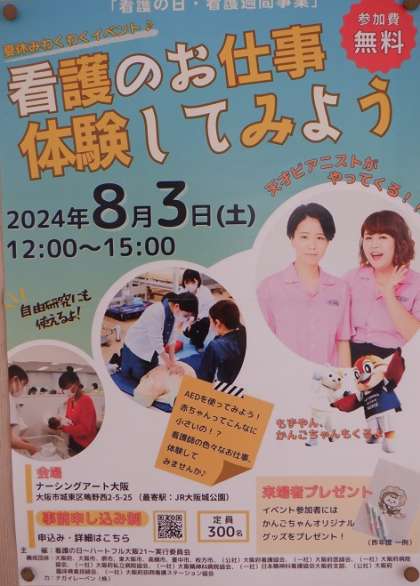 「夏休みわくわくイベント♪看護のお仕事体験してみよう」と題したイベントがつぎの通り開催されます。興味のある人は申し込んでみましょう。