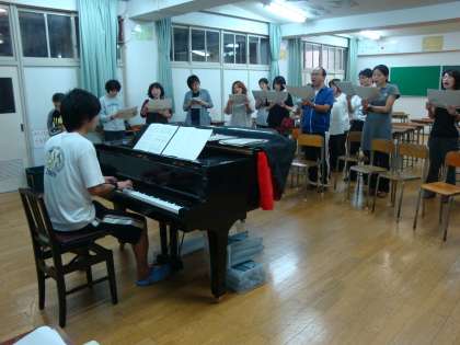 10月25日(金)の文化祭にむけて「PTAコーラス」の練習が始まりました。10日(木)の練習には、総勢22名の保護者・教職員が音楽室に集まり、沖先生の熱心な指導のもと練習が行われました。子どもたちへのメッセージソング『未来へ』を心をこめて歌っています。子どもたちの心に響く、感動の歌を届けましょう!次回は、来週の15日(火)の18:00から行います。是非とも多くの参加をお待ちしています。