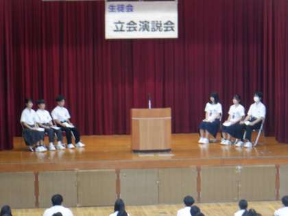 生徒会役員選挙立会演説会が行われました。