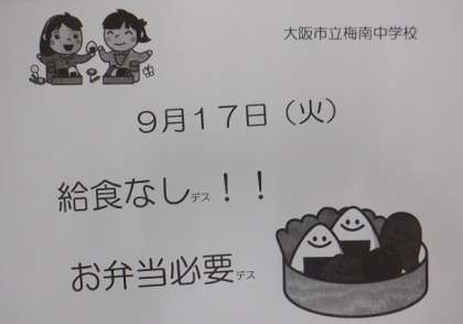 まつば小学校が代休のため、9月17日(火)の給食の提供はございません。