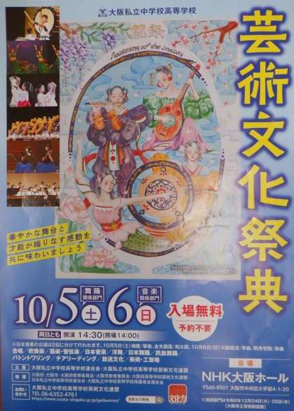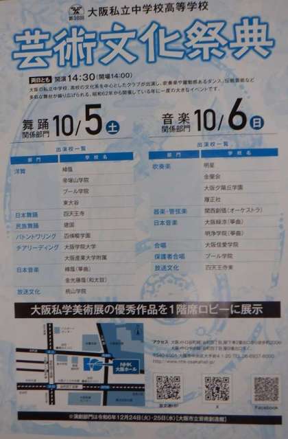 ※詳細は、大阪私立中学校高等学校芸術文化連盟(https://www.osaka-shigaku.gr.jp/geibunren/geibunsai/)まで