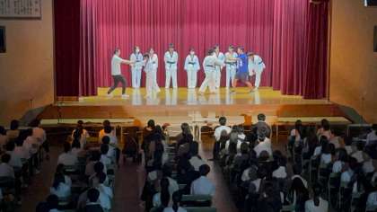 今年度は「テコンドー」です。演舞のあとは板割に挑戦!