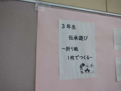 3年生の「伝承遊び」で、折り紙一つでいろいろな物を作成しました。