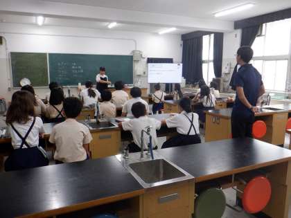 まつば小学校5年生が来校し、本校教員の授業を受けました。