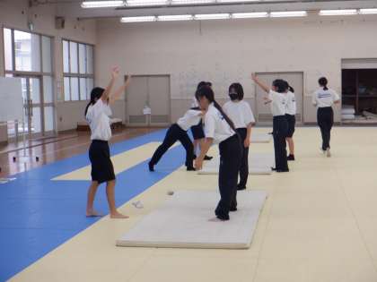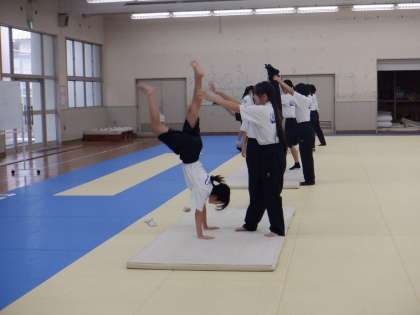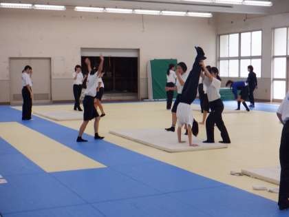 倒立をします。しっかり補助してくださいね。
