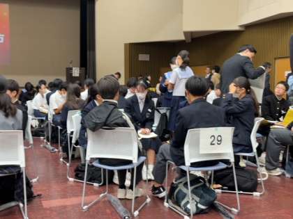 大阪市の中学校の生徒会180名程度が集まりスマホ依存を減らすために出来る取組を考える「スマホサミット」に梅南中学校の生徒会も参加しました。