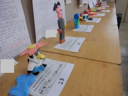 2年生が美術の時間で制作した「ゆるキャラ」のコンテストをしています。