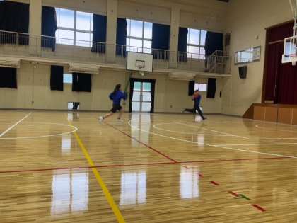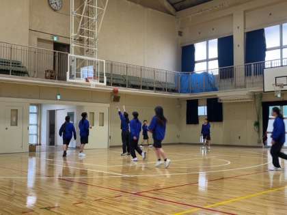 本日体育館の工事が終わりました。女子バスケットボール部の練習が本校の体育館で再開されました。春の大会に向けて頑張っております。