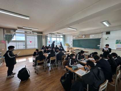 各班に分かれ、「自分の人生計画」についてスピーチをしました。