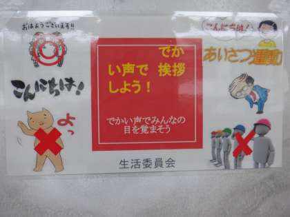 生活委員会の目標は「大きな声であいさつをしよう」です。