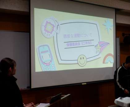 1年生は食生活、2年生は運動、3年生は睡眠についての発表です。