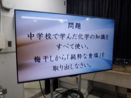 3年生の理科の授業で「梅干しから純粋な食塩を取り出す」実験を行っています。