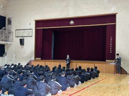 「4月から1学年進級します。1年生は梅南中学校の中核として後輩に尊敬される先輩になるようリードしていってほしいと思います。2年生は進路実現の大切な1年が始まります。春休みの間にしっかりと準備しましょう。また、「自分に何ができるか」を意識し努力していきましょう。」とありました。