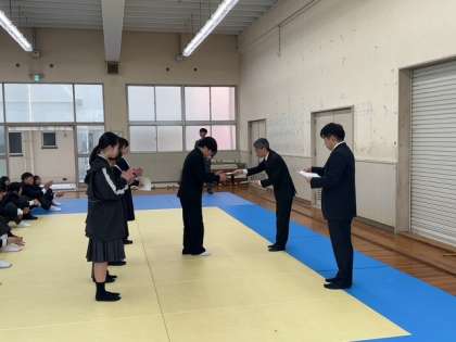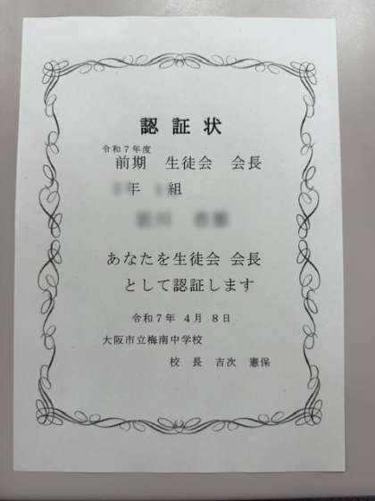 5人の生徒会のみなさん、梅南中学校をよりよい学校にしていきましょう。