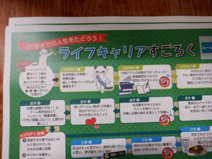 キャリアすごろくとは、中学校から35才までの人生を進んでいきます。
