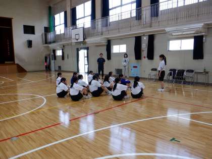 女子バスケットボール部は、各部員の自己紹介をしています。
