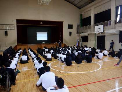 2011年に起こった「大津いじめ事件」を通して、いじめのおそろしさやみなさんへのお願いなどの話でした。
