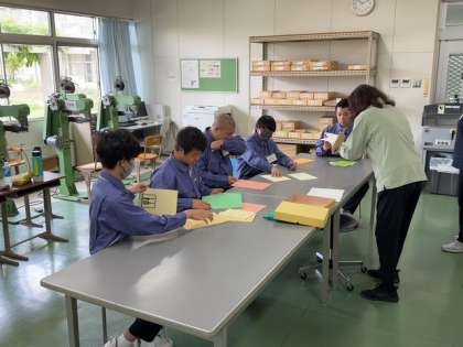 本日のキャリア実習ではノートの製本作業に取り組んでいます。