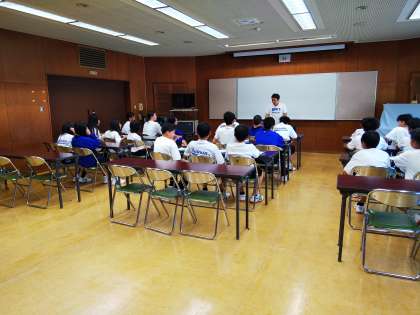 1組は、お風呂のあと、クラスで集まりレク大会の確認をしています。