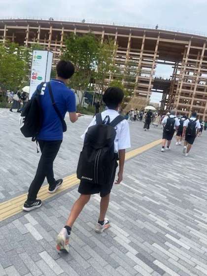 一年生は昼食のため、大屋根リング下に移動してきました。