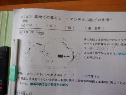 高山での暮らし(アンデス山脈の生活)について学習しています。