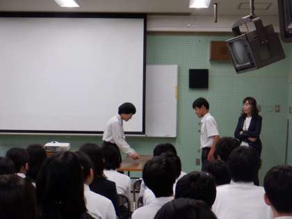 6月実施する職場体験に向けて「働くとは」「仕事について」「皆さんに望むこと」などロールプレイングなどを交えながらお話してくださいました。
