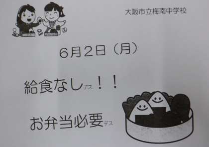 まつば小学校が代休のため、6月2日(月)の給食の提供はございません。
