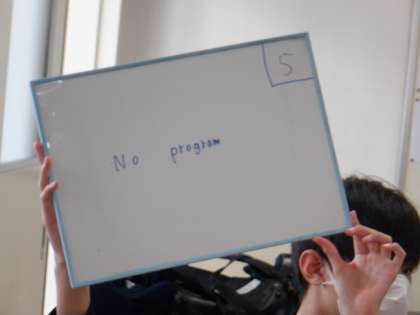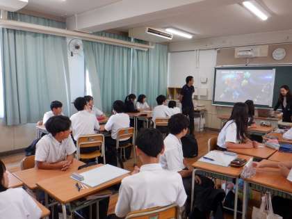 C-NETの先生が来られ、各班でクイズを答えポイントを競い合います。