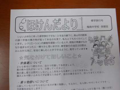 ⇒ほけんだより(修学旅行号)