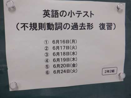 来週、2年生で「不規則動詞の過去形」の小テストがあります。
