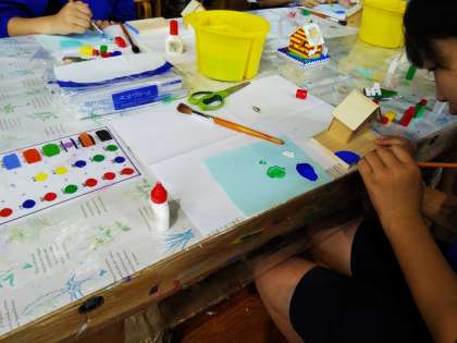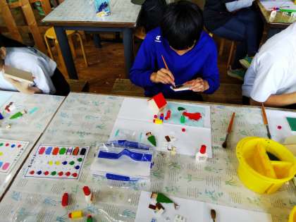 まず、屋根と土台に色をつけていきます。
