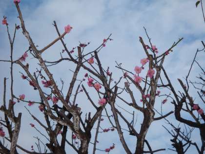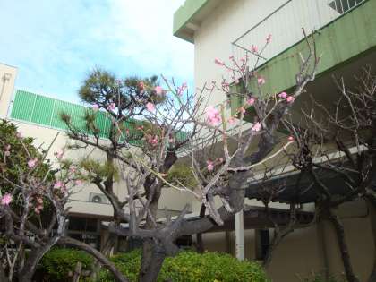 体育館前の梅の花がふくらみはじめました。今日は、たいへん暖かく春を思わせる陽気です。来週には、また寒さがもどってくるようですが、確実に春が近づいています。