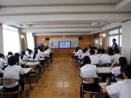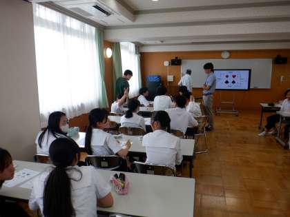 3年生の様子です。ヒューマンキャンパス高等学校の川島先生に来ていただき講義をしてもらっています。進路学習の一貫でもあり、トランプを使って自分の内面について考える活動をしています。