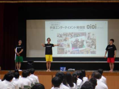本日、人権学習として「聴覚障がい」について、手話エンターテイメント八診断oioiにきていただき、講演をしてもらいました。
