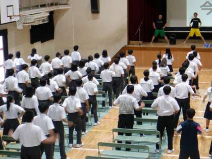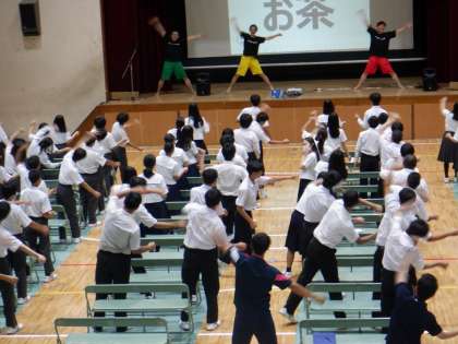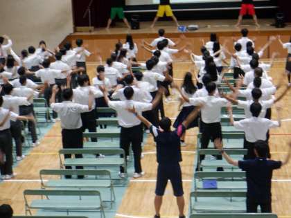 また、手話に親しんでほしいということで、「手話体操」を紹介していただき、学校全体で体操をしました。