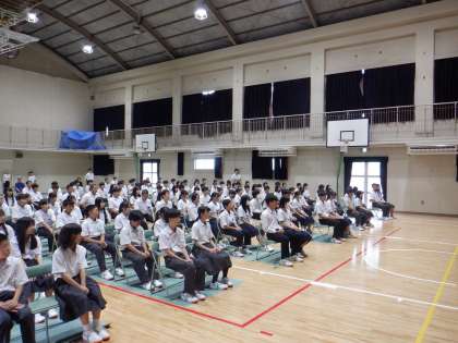 まず初めに、柔道部と夏季標語の表彰伝達がありました。
