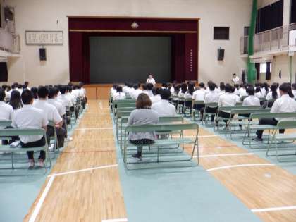 社会を明るくする運動の一環として、西成警察署の方にきていただき「非行防止」について講話をしていただきました。