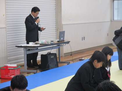 校長先生にも読んでいただきました。「田子の浦に・・・」(写真右)