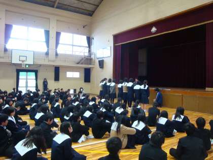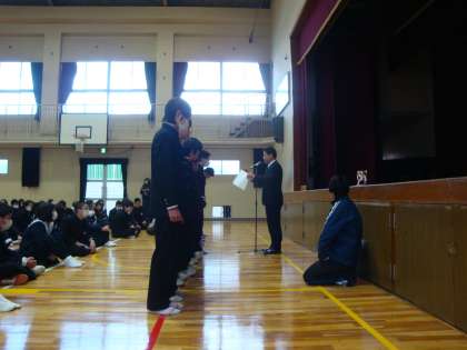 本日の全校集会でサッカー部とバレーボール部の表彰伝達を行いました。