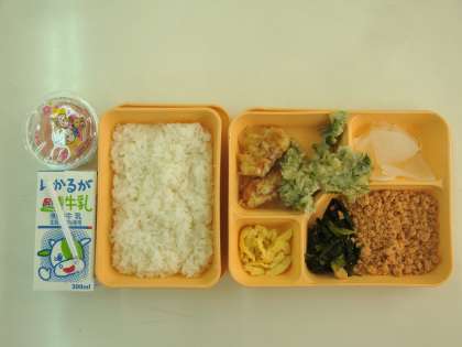 今日3月3日にちなんでの『ひなまつり』メニュー(三色丼) であったのか?いつもとは、ちょっと違った給食であり、3年生も最後の給食を喜んで食べていました。