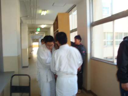 写真は、ハンドボール部と柔道部の生徒です。「ごくろうさま〜」