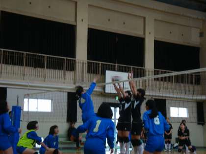 本日、本校体育館で『大阪市中学校バレーボール交流大会』の決勝リーグが行われています。第1試合は先ほど終わり、セットカウント2:1で勝利しました。次の試合は、11時30分頃と13時30分頃を予定しています。応援よろしくお願いします。