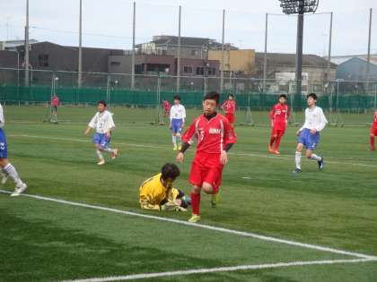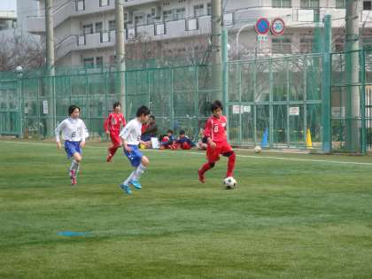 第3試合目の対戦の様子です。写真右は、得点直後の表情です。「ナイスシュート!」