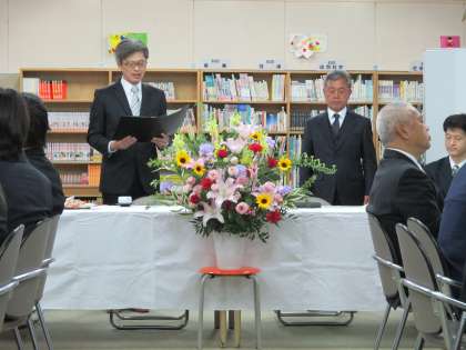 4月1日図書室において、高井利久校長先生の『着任式』が行われました。高井先生は以前、梅南中学校での勤務をご経験され、この度は校長先生として着任されました。
