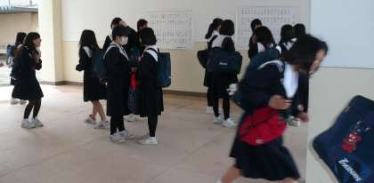 先週金曜日(8日)は始業式でしたが,式の前に,3年生のクラス発表の様子です。同じクラスになって再会を喜び合う人,友だちの名前を探す人などさまざまでした。