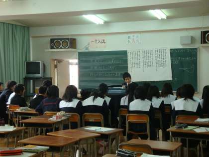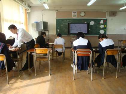2年生「音楽の授業」と「数学の授業」です。音楽では、すばらしい歌声が響いており廊下で保護者の方も口ずさんでいました。数学は、電子黒板を使っての少人数授業です。