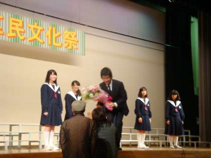 梅南中学校の鶯親会(PTAOB会)から花束の贈呈がありました。子どもたちもたいへん喜んでいました。本当にありがとうございました。