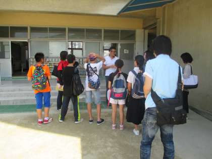仁徳天皇即位のときに王仁博士が詠んだ「難波津に咲くやこの花…」の碑がある御幸森天神からはじまり平野川まで。途中,近くの学校を見学させていただきました。なんと校長先生が出迎えてくださり,お話をうかがうことができました。ありがとうございました。