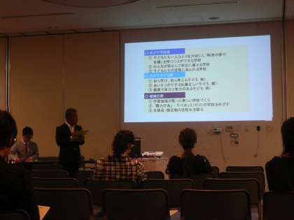 16日(日)西成区役所にて開催されました。会場内の周りに6中学校が相談ブースを設け,中央で各中学校が順に説明を行いました。