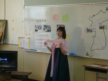 26日(木)国際理解教育の一環としての取り組みの様子を,たくさんの講師のみなさんや大阪市教育委員会の指導主事の先生方などが来校され参観されました。